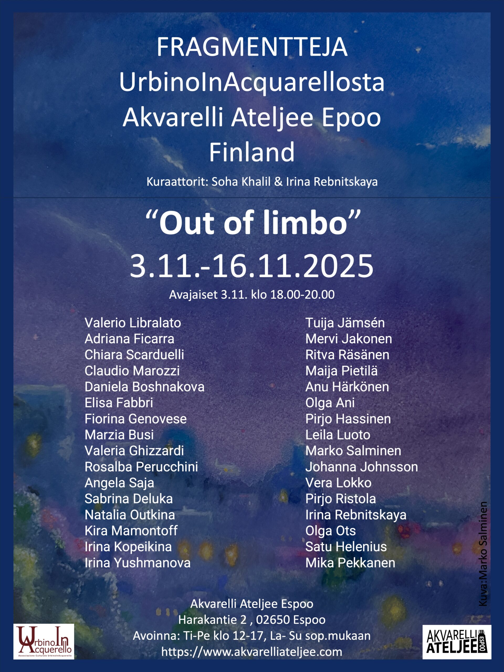 Fragmentteja IV tuo Espooseen italialaisen kansainvälisen akvarellifestivaalin UrbinoInAcquerello hengen ja vuoden 2025 teeman “Out of Limbo”.